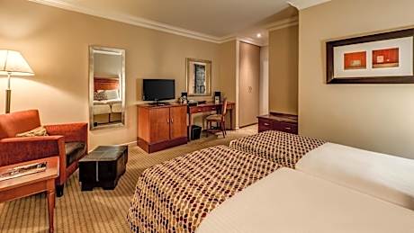 Surrounded by gardens and offering a pool, the Southern Sun Katherine Street is in Sandton. Free Wi-Fi and parking is available. Sandton Station is just over half a mile away. Each bright and modern bedroom at Katherine Street has a TV, private bathroom and air conditioning. All rooms include tea/coffee-making facilities, a hairdryer, and a wake-up call service. Southern Sun Katherine Street features a restaurant that serves contemporary cuisine. The hotel is a 5-minute drive from Sandton Convention Centre and train station. Montecasino Leisure and Entertainment Complex is 8 miles away. At the hotel, guests can relax on a number of terraces, by the pools or in the tropical gardens. There are elegant lounge areas within the hotel, as well as a gym.