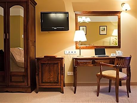 This 4-star spa hotel is located in Podkarpackie Province, 9.3 miles from the center of Rzeszów, on a hilltop near Bieszczady Mountains. It features luxurious rooms with free Wi-Fi and professional spa facilities. The property is located in a picturesque area, which offers panoramic view of the wooded hills around Rzeszów, as well as clean air and mountain-like climate, great both for rest and doing business. At the Spa Hotel Splendor you can make use of the hotel’s recreational area, including Klinika Urody Spa with 14 treatment rooms, as well as 4 saunas, a gym and indoor swimming pool. Spa Hotel Splendor features also a restaurant, a bar and 24/7 front desk. Alpacas The residents of Spa Hotel Splendor are adorable alpacas: Sonic – light brown, Maniek - dark brown and Balu - white. We offer: - meeting with alpacas - 15 PLN / 30 min, 20 PLN / 45 min - feeding animals with carrots prepared by us - photo session with alpacas - workshops conducted in the enclosure - after acclimatizing the animals, also a walk with alpacas Playground Fenced playground equipped with a number of attractions is certainly an asset of this place. The arrangement of greenery makes the playground a pleasant place to relax on the hottest days. The playground provides a number of interesting opportunities for children, including aqua zorbing, inflatables, pontoon slides, water bikes, tyrolean, mini golf, a castle for the youngest, laser paintball. Tent We have a modern event facility. Dedicated to the organization of various events – weddings or family celebrations. It is also a comfortable solution when it comes to organizing corporate events or team-building meetings. Event tent with dimensions of 15 × 98 ft, which can accommodate from 80 to 500 people, depending on the setting, choice of interior furniture and arrangement. The tent is equipped with lighting, kitchen facilities, a gala, and a dance floor.