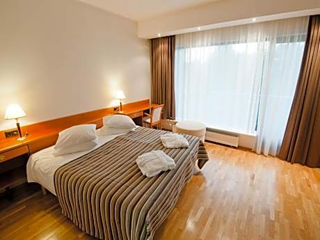 Part of the Tervis Medical Spa complex, this hotel enjoys an ideal condition close to the beautiful sandy beaches of Pärnu, Estonia’s Summer capital. The cozy and bright rooms are equipped with every convenience and have balconies with picturesque views. A rich breakfast buffet, which includes many healthy dishes, is included in the price. The restaurant also offers lunch and dinner buffets. In addition, the hotel features an à la carte restaurant, 3 cozy cafés and bars. In good weather 2 roof bars with impressive views are also open. The Spa Tervis has a shop selling souvenirs, cosmetics, drinks and groceries. You can walk to breakfast, gymnastic exercises and other procedures along the glass galleries that join the 7 buildings of the complex. The complex features a leisure center with spa, sauna, sports and beauty facilities, an entertainment center with live music, and a conference center. Extensive medical facilities, therapies and treatments are also available. The marina and the historic pier of Pärnu are in the close vicinity of Spa Tervis.