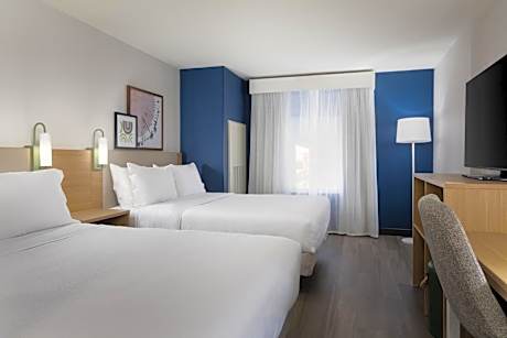 This hotel features an indoor pool and spacious rooms with free Wi-Fi. It is a 20-minute drive to Region of Waterloo International Airport and 10 minutes from downtown Guelph. A microwave, refrigerator and coffee maker are standard in every room at the Holiday Inn Express and Suites Guelph. All rooms include a cable TV and work desk. A daily buffet breakfast is served at the Guelph Holiday Inn Express. It includes hot and cold items, such as cereal, pastries, hot cinnamon rolls and coffee. Free access to the indoor hot tub and a small gym is provided to all guests of the hotel. The business center is available 24/7. Parking is free at the Holiday Inn Express. Stone Road Mall and Ariss Valley Golf Club are both a 10-minute drive away.