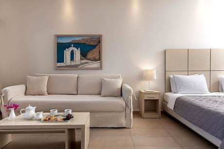 Located in the scenic Firostefani, Splendor Resort offers elegant 5-star accommodations with views over the Aegean Sea. It includes a swimming pool with poolside bar and an on-site restaurant. Free WiFi access is provided throughout. The air-conditioned rooms and suites at Splendor are bright and decorated in light tones. Each with a private balcony, they are equipped with a flat-screen satellite TV, mini fridge and free toiletries. Some units have a spa bath, while others also offer a private pool. Guests can enjoy fresh juices, cocktails and light meals at the pool bar, while Greek and Mediterranean dishes can be enjoyed at the a la carte restaurant for lunch or dinner. Buffet breakfast is prepared daily and served by the pool. The lively town of Fira is around a 15-minute walk away from the complex and offers many dining and entertainment options. Athinios Port is at 5.6 mi. Free private parking is provided on site.
