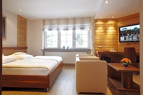 Set in the heart of the Oesling Region, this 4-star hotel offers spacious rooms with free WiFi. It has a fine-dining restaurant and a trendy bar. It also has spa and indoor and outdoor pools. Rooms at Sporthotel Leweck come with a flat-screen TV and an iPod docking station. Some rooms include a seating area and a balcony with views of the park and Bourscheid Castle. Massages can be enjoyed at the spa. Guests can also schedule a variety of beauty treatments, relax in the sauna or hot tub, or work out in the gym. Leweck also has a games room, where guests can play table tennis and air-hockey. There is a bowling alley, an indoor tennis court, and a playground for children. One fine-dining restaurant as well as one Brasserie will let you discover fine and regional cuisine. The cocktail menu in Charly's Bar, which has been awarded "best Luxembourg bar". The hotel is located in the heart of the Oesling, overlooking the haute-Sûre valley and a view of the Bourscheid castle. The village of Lipperscheid is 2625 feet from Leweck. The E421-motorway provides easy access to the Cliffs of Gringlay.