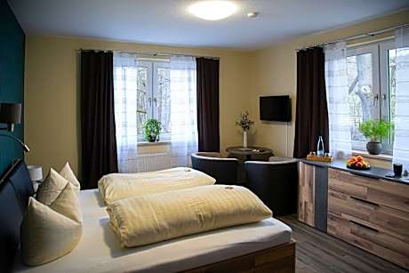 The double room provides a seating area, a wardrobe, as well as a private bathroom featuring a shower and a hairdryer. The double room offers parquet floors, heating and garden views. The unit offers 1 bed.