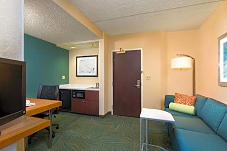This hotel is a 15-minute drive from Austin-Bergstrom International Airport and 15 minutes from downtown Austin. It features a free hot breakfast buffet, indoor swimming pool, and in-room Wi-Fi. The suites at the Austin SpringHill Suites offer a living area with cable TV separated from the bed by a privacy wall. The kitchen includes a refrigerator, microwave, and pantry area. Dishware is provided. The facilities at SpringHill Suites Austin South include a business center and gym. Laundry/dry cleaning services are available as well as room service. Safety deposit boxes are located at the front desk. University of Texas at Austin is 15 minutes from Austin South SpringHill Suites. St Edwards University is also a 7-minute drive from the hotel.