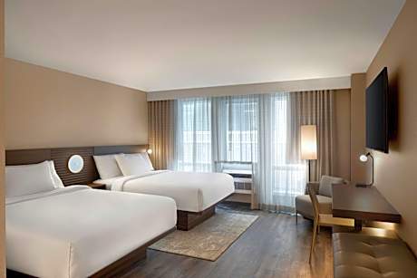 All rooms at AC Hotel Old Montreal rooms include a mini refrigerator. Guests can relax or work in room with the flat-screen TV and free Wi-Fi. There is also a large gym. AC Lounge serves Spanish-inspired breakfast and dinner. It also features a bar. This hotel is located in Old Montreal and is within a 3-minute walk of the Noter-Dame Basilica, 5-minute walk of the Museum of Archaeology and History and Science Museum, and 10-minute walk of the the Quays of the Old Port.
