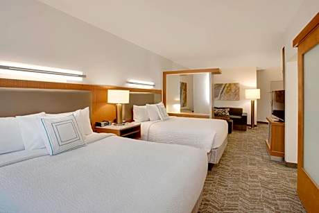 The SpringHill Suites Hartford Airport/Windsor Locks is located less than a mile from the Bradley International Airport. It has an indoor pool, and offers suites with kitchenettes and cable TV. SpringHill accommodations have a seating area with a sofa. The kitchenettes include a pantry area, small refrigerator and a microwave. Free Wi-Fi is available throughout the hotel. In the morning guests can enjoy a full American breakfast buffet. Windsor Locks offers coffee in the lobby. The Naismith Basketball Hall-Fame is a 22-minute drive away.