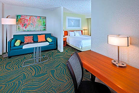 This all-suite hotel in Lake Buena Vista is 1 mi from Walt Disney World and Disney Springs. The hotel offers a free hot breakfast buffet and free high-speed internet access. A mini-refrigerator and a microwave are provided in every guest suite at the Lake Buena Vista SpringHill Suites. A cable TV and separate sitting areas are also included in each spacious suite. SpringHill Suites Orlando Lake Buena Vista in Marriott Village features an outdoor pool with a children's play area and hot tub. A fitness center and food court serving ice cream, pizza and sandwiches are also available on site. Universal Studios (9.9 mi) and SeaWorld (4.3 mi) are within a short drive of the Orlando SpringHill Suites. The Orange County Convention Center is also 6.8 mi away.