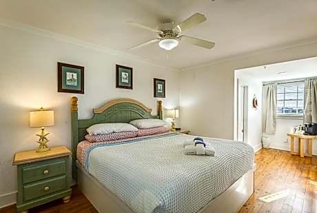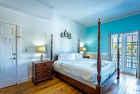 St George Inn offers a clean "Old Florida" stay to your quiet Gulf Coast vacation. We are centrally located on St George Island a block away from the blue waters of the Gulf of Mexico and a block away from Apalachicola Bay. All of our rooms are dog friendly (with a fee) and will provide you with a King Bed and Private bathroom with access to the balcony. Wifi, TV, Basic Cable, Microwave and small Refrigerator are offered as well as AC or Central Air Conditioning. St George Inn has three floors and lots of stairs. We do not offer an elevator, laundry services, food or a pool. Front Desk operates between the hours of 8am - 8pm Nearest Airports are Tallahassee: 75 Miles or 1 ½ Hrs Panama City: 96 Miles or 2 Hrs