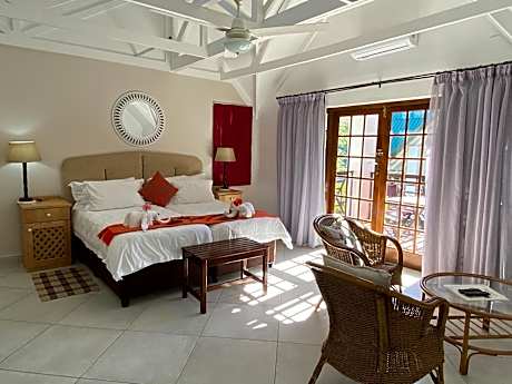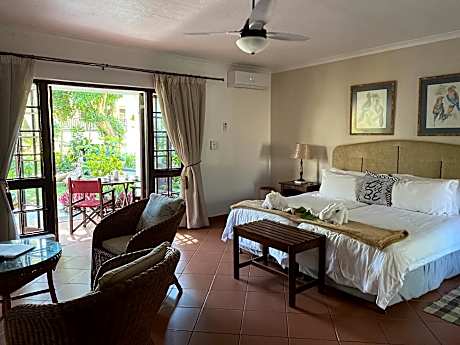 Nestled in a tropical garden, St Lucia Eco-Lodge offers stunning views of the Indian Ocean, Mapelane dune and the estuary mouth. Facilities include an outdoor swimming pool. The accommodations at St Lucia Eco-Lodge features a balcony or patio, some with sweeping views of the wetlands. All apartments have air conditioning, a seating area with satellite TV, and a bathroom with a hairdryer. A local and international breakfast is available in the restaurant. Guests can have a refreshing drink at the bar, which has panoramic views over the wetlands to the sea. St Lucia Eco-Lodge can help arrange a variety of trips and activities, including boat safaris on Lake St Lucia, horse riding in the wetlands, game reserve excursions, and whale watching. Cape Vidal, one of the best snorkeling and spear fishing venues on the coast, is 20 mi north of St Lucia. The world renowned Hluhluwe/ iMfolozi game reserve is just a 35-minute drive away. There is ample secure parking on site.