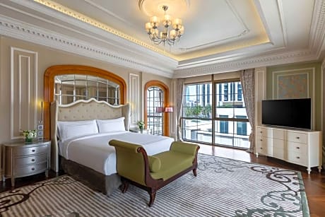 Al Habtoor Palace provides flawless service and all the necessary facilities for visitors. Maintain seamless communication using the complimentary Wi-Fi at hotel. Effortlessly arrange transportation to and from the airport using the hotel's airport transfer services. Discovering Dubai becomes even more accessible through the taxi and shuttle amenities provided at the hotel.For visitors traveling by automobile, complimentary parking is available. During your stay at this fantastic hotel, the attentive front desk personnel can provide you with a range of amenities such as concierge service, express check-in or check-out and luggage storage.In search of city's top entertainment, seek assistance at the hotel's ticket service and tours for reservations. At the hotel, utilize the on-site laundromat, dry cleaning service and laundry service to maintain your beloved travel attire fresh, allowing you to bring fewer clothes. Craving relaxation? Make the most of your stay at the Al Habtoor Palace with convenient amenities like 24-hour room service, room service and daily housekeeping at your disposal. For all your minor, last-minute requirements, the convenience stores can promptly cater to them, eliminating the need to venture out.For visitors wishing to smoke, designated smoking zones can be found.At Al Habtoor Palace, every guestroom is provided with convenient amenities and fittings to ensure a comfortable stay.Enhance your experience at hotel with the knowledge that certain rooms are equipped with linen service, blackout curtains and air conditioning for your convenience.At Al Habtoor Palace, each visit offers an array of intriguing room configurations, featuring accommodations with separate living room and balcony or terrace, ensuring a distinct experience every time.Certain rooms boast in-room amusement features such as television, in-room video streaming and cable TV, offering guests an enjoyable stay.In select rooms within the hotel, a refrigerator, bottled water, a coffee or tea maker, instant coffee, instant tea and mini bar is available to cater to your requirements when desired. In the hotel, certain guest bathrooms come equipped with essential bathroom amenities, such as a hair dryer, toiletries and bathrobes, ensuring a comfortable stay for guests. Begin your day with a scrumptious on-site breakfast available each morning at Al Habtoor Palace. Begin your day feeling refreshed and invigorated as you enjoy a delightful cup of quality coffee available at the cafe situated within the hotel.At the hotel, an assortment of easily accessible and delicious meal choices are available to satisfy your appetite whenever it strikes.At Al Habtoor Palace, guests with diverse dietary needs are accommodated by offering an array of cuisine options, including kosher and halal.Create unforgettable moments with your fellow voyagers just steps away, at hotel's bar and nightclub, for a delightful evening together.At Al Habtoor Palace, guests can take pleasure in the delightful recreational amenities provided for their entertainment. Conclude your holiday perfectly with a visit to massage, hot tub, steam room, spa and sauna on your final days. Be sure to drop by the pool at hotel at least once during your stay. At Al Habtoor Palace, utmost care is taken to ensure guests' comfort. Relish your preferred beverage in your swimwear by the hotel's poolside bar. Discover the fitness amenities at hotel to maintain your health and strength during your getaway.