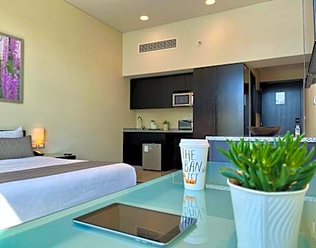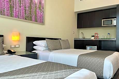 Strategically located in the heart of the financial district of Santa Fe in Mexico City, surrounded by important national and international corporations, a few minutes from the Expo Santa Fe convention center, important shopping centers and Parque La Mexicana. We have rooms and suites, ideal for short or long stays, which are characterized by their spaciousness and equipment. Stadia offers suites with fully equipped kitchens, washers and dryers. Enjoy fine towels and bedding. Suites also feature satellite TVs, DVD players and a comfortable work space. Explore the building's gym and lounge in safety with Stadia's 24-hour surveillance and security. For private in-suite dining, room service is available.