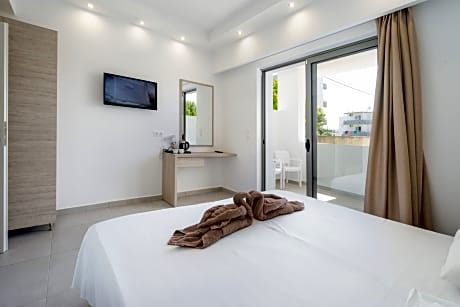 Opening to a balcony, all rooms of Stamos Hotel come with free wi-fi, tv mini fridge. A private bathroom equipped with a shower is included.