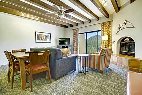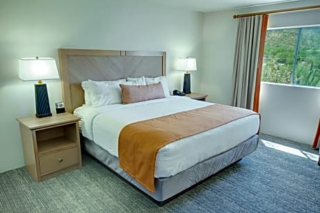 In the foothills next to Tucson Mountain Park in Arizona, this all-suite hotel offers enjoyable facilities such as a 27-hole golf course as well as on-site dining options. All units feature air conditioning and a cable TV. A kitchen is offered in select units and is equipped with a dishwasher, an oven, and a microwave. Starr Pass Golf Suites features a 75-foot, outdoor swimming pool. Guests can workout in the fitness center or explore the scenic area with a rented mountain bike. Picturesque hiking opportunities are available only moments away at Saguaro National Park and Sabino Canyon. Catalina Steakhouse at the Starr Pass Suites is open for lunch and dinner. Guests can dine indoors or enjoy the view of the golf course and surrounding mountains from the spacious outdoor patio. Tucson Convention Center is 4.3 mi from the accommodations, while Arizona Stadium is 5.6 mi from the property. Tucson International Airport is 8.7 mi away.