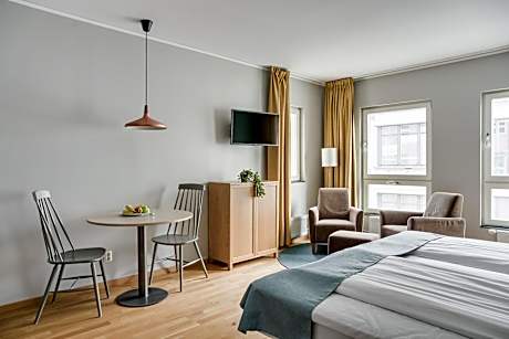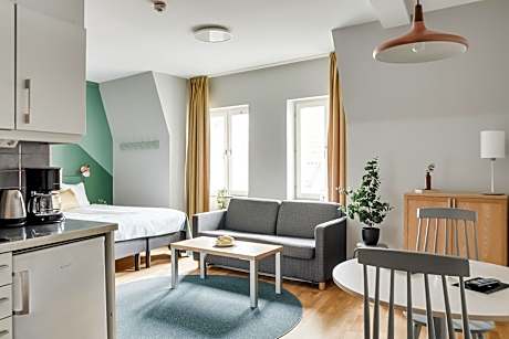 Forenom Aparthotel Lund is within 5 minutes' walk of Lund University and the city's 12th-century cathedral. It offers free WiFi and accommodations options with private, modern kitchen facilities. Forenom Lund's accommodations options have a seating area and a flat-screen TV with cable channels. Kitchen facilities include microwaves and tea and coffee makers. Guests enjoy free use of the sauna and gym. A guest computer is available in the lobby. The hotel also offers bicycle rental. A communal laundry room is available for guests’ use. Forenom Aparthotel Lund is certified as an environmentally friendly hotel. Lund's main square, Stortorget, is 1312 feet from the hotel. Lund Central Station is 0.6 mi away. When booking 8 rooms or more, different policies apply.