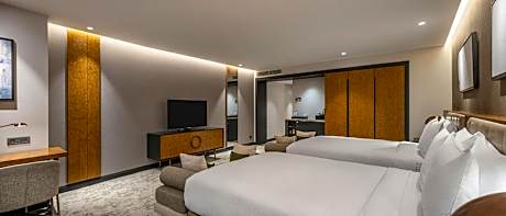 At Hilton Istanbul Maslak, exceptional service and top-notch amenities create a memorable experience for guests.Complimentary internet access is available in the hotel to ensure you stay connected during your visit.For guests with their own vehicle, parking facilities are provided. Continuously receive the support you require through front desk amenities such as concierge service, luggage storage and safety deposit boxes. At the hotel, utilize the convenient laundry service to maintain your preferred travel attire fresh, allowing you to pack lighter.Craving relaxation? In-room amenities such as 24-hour room service, room service and daily housekeeping allow you to maximize your time spent inside the room.Accommodations come equipped with all the conveniences required for a restful night's slumber. A selection of rooms at Hilton Istanbul Maslak come furnished with blackout curtains to cater to your needs and comfort. A few accommodations at Hilton Istanbul Maslak also include unique design elements like a balcony or terrace.A number of rooms feature television for guest amusement and enjoyment.In certain rooms, the hotel offers visitors access to instant tea and mini bar.Hilton Istanbul Maslak offers a hair dryer, toiletries and bathrobes in the restrooms of specific accommodations. Allow your journey to be free from the pangs of hunger! On-site eateries offer delicious and accessible meal choices.An evening spent at hotel's bar can offer as much enjoyment as venturing out with your fellow travelers.At Hilton Istanbul Maslak, guests can take pleasure in the delightful recreational amenities provided for their entertainment. At Hilton Istanbul Maslak, a wide array of amenities guarantees a fulfilling experience throughout your visit. Make your holiday truly memorable by taking a rejuvenating plunge into the pool. At the hotel fitness center, you have the option to engage in your daily exercise routine or simply alleviate your jet lag by breaking a sweat.