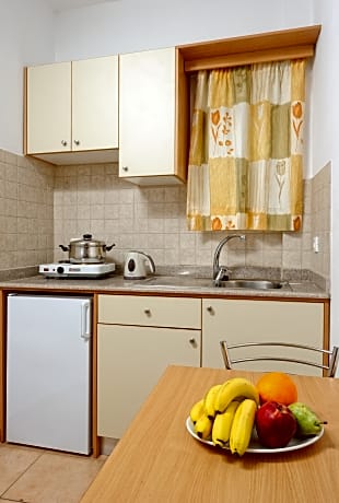 This charming, family-run hotel is nestled in the heart of Malia Old Town in Crete, just 31. 5 kilometers from Heraklion International Airport and a short 15-minute walk from the beach. The hotel features a well-tended garden and a good-sized pool with a snack bar serving breakfast, light meals, and refreshing drinks. Each brightly colored room offers a well-equipped kitchenette for preparing small meals and a furnished balcony or terrace. Please note that air conditioning is available in each room for an extra charge. Some rooms boast built-in beds, adding a touch of traditional style that complements the old town's charm. Self-catering amenities include electric cooking rings, a refrigerator, cutlery, crockery, glassware, kettle, coffee maker and a toaster. Hair dryer is available in each room.