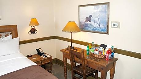 Each guest room at Stockyards Hotel is meticulously decorated with a modern twist on Western décor, complete with crisp white linens and rich furnishings. Rooms are equipped with flat-screen satellite TVs, work desks, and coffee-making facilities, ensuring both comfort and convenience. Bathrooms are well-appointed with complimentary toiletries and hairdryers.