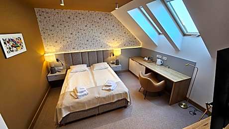 Stoczek 1929 offers a combination of luxury and the unique atmosphere of a traditional, wooden log cottage located in the center of Białowieża. The Bialowieża National Park is just a short walk away. Each air-conditioned and individually decorated room is furnished in wood and comes with clay floors. There is a safety deposit box and a flat-screen TV with satellite channels, as well as a private bathroom. Free hot spot internet is available. The restaurant at Stoczek 1929 serves high quality regional cuisine. The building is surrounded by an apple orchard with tables and chairs, a garden with a playground, and a sports field for playing boules.