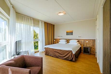 The Hestia Hotel Strand is located in Pärnu resort, just a 10-minute walk from the beach and 20 minutes away from the city center. It offers free access to spa facilities with an indoor swimming pool and spa treatments. All rooms at the Hestia Hotel Strand are air-conditioned and come with a cable TV, tea and coffee making facilities and a bathroom with bathrobes and a hairdryer. Some have a seating area. A varied buffet breakfast is served every morning at the hotel’s restaurant, the Strand, which offers a selection of international dishes. In the evening, guests can enjoy a drink in the bar. The hotel spa area includes a steam sauna, Sanarium, Finnish sauna, massage pool, Hot tub and lava stone beds. The property offers 24-hour front desk which can assist with bicycle rental or concierge services. Hestia Hotel Strand is located within a 10-minute walk from the Pärnu Kalevi Stadium. Parking is available for an additional fee with electric vehicle charging station and free WiFi in public areas are provided. "For families with children there is also Lotte Play Studio (extra fee)."