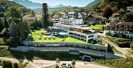 Belvédère Strandhotel is a 4-star superior hotel in Spiez, right on the shore of Lake Thun. It includes a spa area, an outdoor pool, a private beach, and a gourmet restaurant overlooking the lake. The elegant rooms at the Strandhotel Belvédère feature a flat-screen cable TV, a mini-bar, a Nespresso coffee machine, and a bathroom. Bern can be reached in a 30-minute drive.