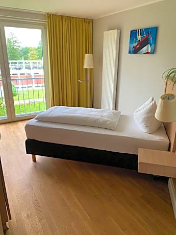 Located in the Schleswig-Holstein mudflats, this family-run hotel lies on the River Eider in the harbor town of Tönning. Many rooms offering excellent views of the estuary. All comfortably furnished rooms at the BE BIO Hotel be natural - direkt am Wasser feature a TV and private bathroom. Das Hotel verfügt über ein Bio-Restaurant.Guests can enjoy the fresh sea air with drink on the terrace. Guests can relax at the wellness area of the be natural’s partner hotel, be active , offering various massage and beauty treatments. A bathing strand, outdoor pool and tennis courts are just 328 feet away The town of Tönning, with its historical harbor and information center, is just a 10-minute walk from the be natural. At the hotel reception guests can also book treatments at the be active spa, a 10-minute walk away. The North Sea coast can be reached in a 15-minute drive. Da Hunde nicht in allen Zimmer gestattet sind, bitten wir um Anmeldung Ihres Hundes.