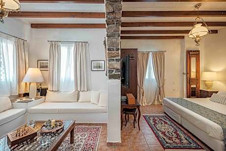 Decorated with respect to the local architecture, this spacious maisonette enjoys Aegean Sea views.