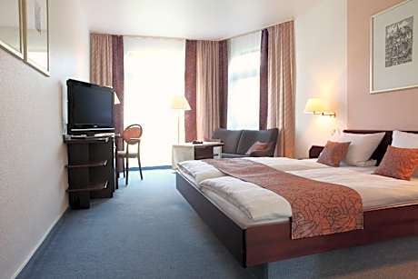 This hotel enjoys an beautiful location in the quiet Michelbach district, a 2-minute drive from Pharmapark Behringwerke and a 7-minute drive from Marburg town center. The spacious rooms at Hotel Stümpelstal feature modern décor. Rooms have large windows, which overlook the garden. A full breakfast buffet is served each morning. Traditional German cuisine is served in the cozy lounge with fireplace or on the garden terrace in summer. The Emils restaurant is open daily from 12:00 to 20:30. Room service is available. Hotel Stümpelstal is an ideal base for exploríng Marburg’s Medieval churches and impressive Gothic architecture.