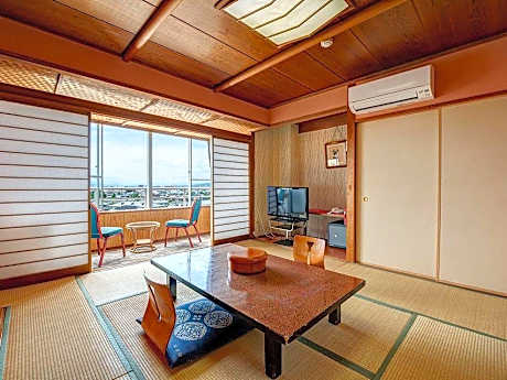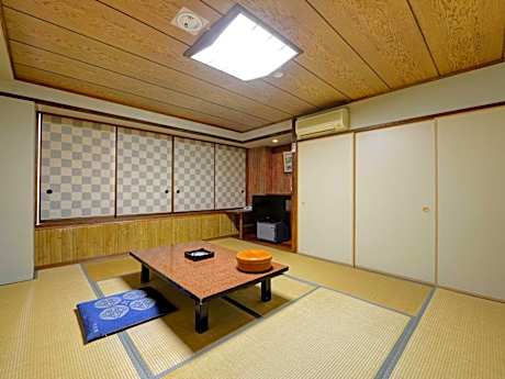 Features tatami (woven-straw) flooring and Japanese futon bedding. Air-conditioned room with a private toilet, Yukata robes, slippers and an electric kettle. Bathrooms are shared.