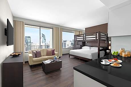 At Sukhumvit Park, Bangkok - Marriott Executive Apartments, exceptional service and top-notch amenities create a memorable experience for guests. Complimentary internet access is available in the hotel to ensure you stay connected during your visit.Amenities at shuttle offered by Sukhumvit Park, Bangkok - Marriott Executive Apartments simplify the organization of your excursions, tourist activities, and other adventures in Bangkok.Complimentary parking is available for guests. Continuously receive the support you require through front desk amenities such as concierge service, luggage storage and safety deposit boxes.Always look your best in your preferred attire with the dry cleaning service and laundry service provided at Sukhumvit Park, Bangkok - Marriott Executive Apartments. Craving relaxation? In-room amenities such as room service and daily housekeeping allow you to maximize your time spent inside the room.Accommodations come equipped with all the conveniences required for a restful night's slumber.A selection of rooms at Sukhumvit Park, Bangkok - Marriott Executive Apartments come furnished with air conditioning to cater to your needs and comfort.A few accommodations at Sukhumvit Park, Bangkok - Marriott Executive Apartments also include unique design elements like a separate living room. A few chosen rooms are equipped with television and cable TV to ensure guest amusement. In certain rooms, the hotel offers visitors access to a refrigerator, bottled water, a coffee or tea maker, instant coffee, instant tea and mini bar.In the hotel, certain guest bathrooms come equipped with essential bathroom amenities, such as a hair dryer, toiletries, bathrobes and towels, ensuring a comfortable stay for guests. All adore a delightful cup of coffee! An on-site coffee shop ensures you can relish a cup of authentic, freshly-brewed coffee every morning -- or whenever you desire it. An evening spent at hotel's bar can offer as much enjoyment as venturing out with your fellow travelers.At Sukhumvit Park, Bangkok - Marriott Executive Apartments, guests can take pleasure in the delightful recreational amenities provided for their entertainment.Conclude your days in complete tranquility by visiting the salon situated precisely at the hotel.