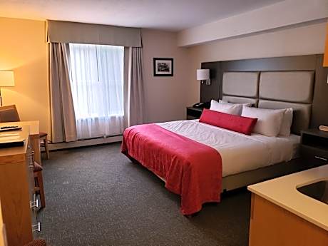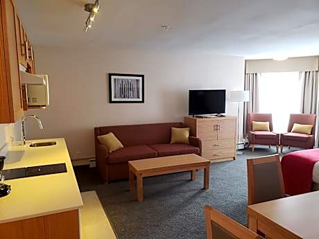 This traditional hotel is a ski-in/ski-out property located in the middle of Sun Peaks Resort in Sun Peaks, British Columbia. It is steps away from chair elevators and hiking/biking trails. Free WiFi is available in all guest rooms. The guest rooms and studios at Sun Peaks Lodge are equipped with a flat-screen TV, seating area, phone and windows which can be opened. A refrigerator, coffee maker with free coffee and a kettle with tea are provided for guest convenience. All rooms feature bathrooms with walk-in showers. Studios are located in the adjacent building and additionally offer a kitchenette. The Steakhouse Restaurant and Bar, (open in the winter only) offers steak and seafood dishes along with an extensive wine list. McSporties Ski Rental Shop is part of the Sun Peaks Lodge. Concierge services are offered. Ski equipment can be stored free in the storage room, a tuning bench and boot dryer are available. In the winter months, guests can relax in the hot tub, steam room or the sauna. The Sun Peaks Resort Golf Course is a 2 minute walk away.