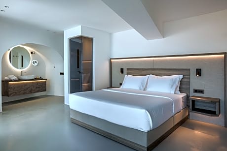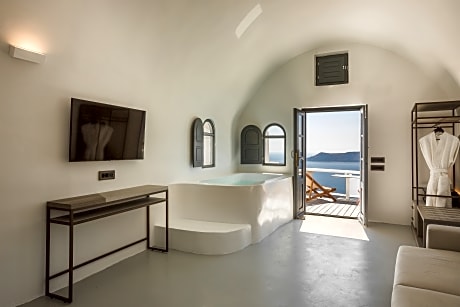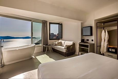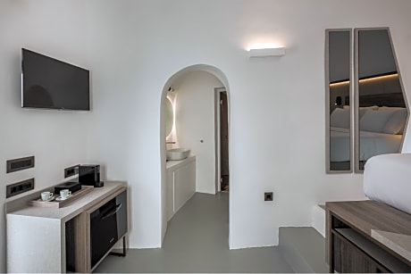 Sun Rocks, perched 984 feet above the Aegean Sea, offers a cliff-side pool with a lounge-bar (operating between 08:00 and 23:00) and a poolside restaurant. The 18 sophisticated rooms and suites feature soft, discreet earthy colors. Each luxuriously furnished unit has a sitting area and shared veranda with superb views of the Aegean Sea. An American a la carte breakfast is served by the pool. Fresh juices, fine wines and cocktails are served throughout the day. The romantic Aquaz Restaurant proposes imaginative dishes prepared with the finest produce. This romantic getaway in Santorini is conveniently located in Firostefani, less than 0.6 mi from the island’s capital of Fira and 15 minutes from the port and the airport.