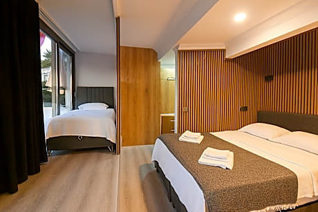 Suna Suites Hotel & Fethiye provides flawless service and all the necessary facilities for visitors. Stay connected with your associates, as complimentary Wi-Fi is available during your entire visit. The hotel offers taxi and car hire amenities for your ease in navigating around Fethiye. When arriving by car, you'll be grateful for the on-site complimentary parking at hotel.Whether it's an extended stay or simply needing fresh attire, laundromat and laundry service provided by hotel ensures your cherished travel garments stay spotless and accessible.Your stay will be comfortable with the presence of room service and daily housekeeping as an in-room amenity for your relaxation and enjoyment.Smoking is permitted solely in the specified smoking zones allocated by hotel. In order to ensure the utmost level of relaxation, the guestrooms feature an inviting design and are equipped with all basic necessities, creating a delightful stay experience. To ensure your satisfaction, certain rooms in the hotel come fitted with air conditioning for a more pleasant stay. Several chosen accommodations at Suna Suites Hotel & Fethiye have a separate living room incorporated into the room design.Selected rooms offer in-room amusement like television as a source of entertainment for guests to enjoy.Within specific rooms, a refrigerator, a coffee or tea maker, instant coffee and mini bar is conveniently available for your use. Understanding the significance of bathroom facilities in enhancing visitor contentment, hotel offers a hair dryer, toiletries and bathrobes within a few chosen chambers. Upon your arrival, don't miss experiencing bar for enjoyable in-house evening entertainment.