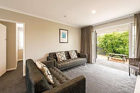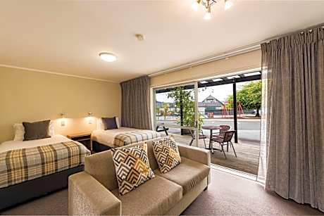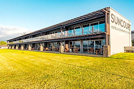 Suncourt Hotel & Conference Center offers spectacular views of Lake Taupo and the volcanoes of Tongariro National Park. All individually air-conditioned rooms include free WiFi, free on-site parking and a 55 inch Smart TV with Freeview and casting/streaming abilities. Suncourt's restaurant, Lake Bistro, serves breakfast, lunch and dinner daily, offering à la carte dining from 07:00 until late. The restaurant offers a large screen Smart TV and an open fireplace. Guests can also dine outdoors on The Terrace, drenched in sunshine until late in summer and with a fully enclosed and heated area to protect you on colder Taupo days, the terrace can be enjoyed all year round. Suncourt Hotel's amenities include a swimming pool and an outdoor heated hot tub. The hotel also offers a children's playground.
