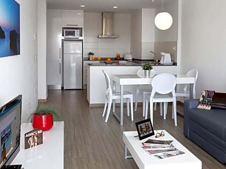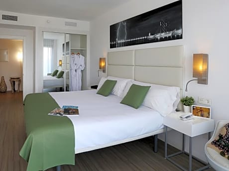 The AxelBeach Ibiza it's located right on the beach, a unique landscape in Sant Antoni bay. Its trendy and exclusive interior design makes our modern apartments exclusive and stylish, which have separate bedroom, living room, totally equipped kitchen and private terrace. Get ready to enjoy with us the best sunsets of Ibiza from the magnificent pool deck at our Sky Bar or just lying on the beach indulging yourself by the Axel best experience ever. The AxelBeach Ibiza is very popular with gay guests and its hetero-friendly philosophy allows to welcome for all guests, regardless of sexuality. It's also an adults only hotel.Guests can work out for free at the Fitness Centre and a personalized massage can also be provided on request in the spa (extra charge)