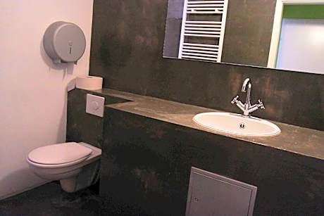 The lockable capsule King Size for 1-2 people is located in a dormitory and equipped with light, power outlets, ventilation, a mirror and hangers. The outside room provides lockers, and the bathrooms are shared.