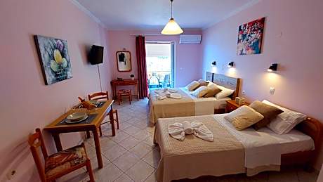 Providing mountain views, Sunrise Studios in Nydri provides accommodations, a garden, a bar, and a shared lounge. This property offers access to a balcony, free private parking, and free Wifi. The infinity pool features a pool bar and fence. The condo hotel will provide guests with air-conditioned units with a wardrobe, a kettle, a toaster, a fridge, a safety deposit box, a flat-screen TV, a terrace, and a private bathroom with a shower. At the condo hotel, all units are soundproof. At the condo hotel, every unit includes bed linen and towels. Buffet and continental breakfast options with juice and cheese are available. You can prepare your own food in the kitchen, and the condo hotel also offers a coffee shop. Pasas Beach is a 16-minute walk from Sunrise Studios, while Dimosari Waterfalls is 0.9 miles away. Aktion Airport is 22 miles from the property.