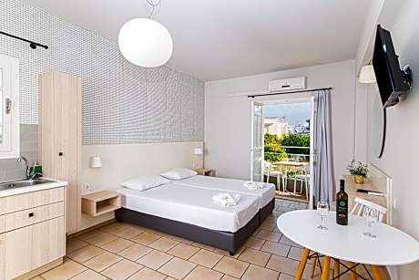 Providing city views, Sunshine Studios in Malia provides accommodations, a seasonal outdoor swimming pool, free bikes, a garden, a bar, and a shared lounge. Spa facilities and a car rental service are available for guests. There's a sun terrace and guests can access free Wifi and free private parking. The apartment complex will provide guests with air-conditioned units with a desk, a coffee machine, a toaster, a fridge, a safety deposit box, a flat-screen TV, a balcony, and a private bathroom with a shower. A patio with an outdoor dining area and garden views is offered in all units. At the apartment complex, every unit includes bed linen and towels. You can prepare your own food in the kitchen before eating in the private dining area, and the apartment also offers a coffee shop. Sightseeing tours are available within easy reach of the property. Central Malia Beach is a 14-minute walk from the apartment, while Cretaquarium Thalassocosmos is 13 miles away. Heraklion International Airport is 18 miles from the property.