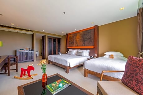Located in the secluded area of Nai Harn Beach, the property is a 10-minute ride from Rawai Beach and Promthep Cape. Sunsuri Phuket features cozy accommodations with two outdoor pools, purpose built kids pool and kids club. Free WiFi is offered in the entire resort. Set on a hillside, Sunsuri Phuket is a 30-minute drive from Phuket Town and Central Festival Phuket Shopping Center. Phuket International Airport is a 50-minute ride away. Beautifully decorated rooms have air conditioning, a cable TV and a private balcony. Private bathrooms offer free toiletries and slippers. Guests can workout in the fully-equipped gym or relax with pampering massage treatments at the spa. For convenience, the resort offers a 24-hour front desk, meeting facilities and library. The on-site restaurant serves international cuisine, while a variety of drinks can be enjoyed at the wine bar. Room service is available around the clock.