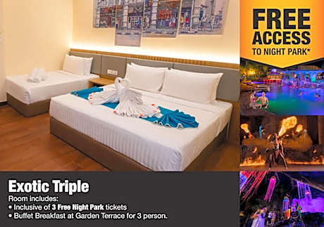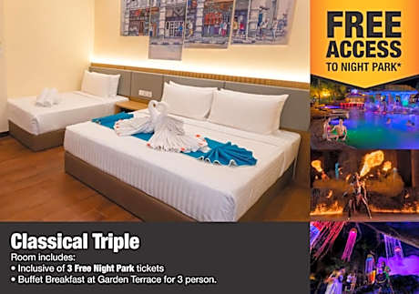 Great care is taken to ensure guests experience comfort through top-notch services and amenities. Remain linked during your visit by utilizing the complimentary internet access available. The hotel offers complimentary parking for guests who arrive with their own mode of transport.Effortlessly plan your daily activities and travel requirements with concierge service, luggage storage and safety deposit boxes provided by the front desk services.Need some relaxation? Your room features daily housekeeping to make your stay even more comfortable and enjoyable. The hotel is completely smoke-free.In limited designated zones, smoking is exclusively permitted. Crafted for coziness, every guestroom provides an array of features, guaranteeing a tranquil night's sleep while maintaining the level of comfort.For a more enjoyable stay, select rooms at hotel are equipped with blackout curtains and air conditioning.For certain chosen rooms, guests can enjoy in-room amusement like television and cable TV as a part of their stay. Rest assured that your hydration needs will be met, as some guestrooms are equipped with a refrigerator, a coffee or tea maker, bottled water and mini bar. Maintain your cleanliness and comfort using a hair dryer and toiletries available in select guest restrooms. Each morning at Sunway Lost World Hotel, a scrumptious, homemade breakfast kick-starts the day.