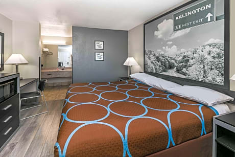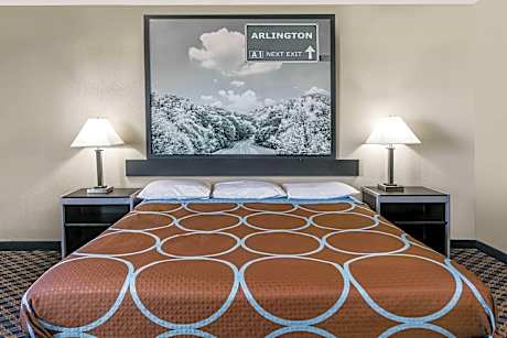 This Arlington hotel is less than 2 miles from Six Flags Over Texas amusement park. It features free Wi-Fi and a daily grab and go breakfast. Tea and coffee-making facilities, a microwave, and a refrigerator are featured in each guest room at Super 8 Arlington Southwest. A TV with cable channels provides in-room entertainment. Guests can relax and refresh with the hotel’s outdoor swimming pool and hot tub. Vending machines offer a variety of beverages. Dallas Cowboys Stadium and Rangers Ball Park are within 10 minutes’ drive of the hotel. University of Texas at Arlington is 5 miles away.
