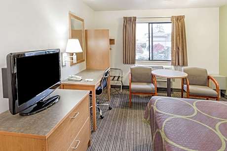 Located 2 miles away from Les Schwab Amphitheater, this Bend motel features an indoor pool and hot tub. It serves a daily, grab and go breakfast. All guest rooms include free Wi-Fi. A cable TV with premium channels is included in each air-conditioned guest room at Super 8 Bend. A coffee maker, a hair dryer and ironing facilities are included in each room. A 24-hour reception greets guests of Bend Super 8. Guests have access to a business center with fax and photocopying services. Vending machines featuring snacks and drinks are available. Bend factory outlet stores are less than 1 mile away from this motel. Deschutes Brewery is 8 minutes’ drive away.