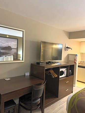 Conveniently located in Courtenay town center, Super 8 by Wyndham Courtenay offers Wi-Fi. A refrigerator and a coffee maker are also offered. Comox Valley Airport is 6.8 mi away. A cable TV is featured in rooms at Super 8 by Wyndham Courtenay. A work desk and a balcony are also included. Select rooms offer a kitchenette. Accessible rooms are available. A 24-hour reception greets guests of Super 8 by Wyndham Courtenay. Fax, photocopy and laundry facilities are available. A vending machine provides drinks. Free newspapers are offered. Glacier Greens Golf Course is 6.8 mi away. Miracle Beach Provincial Park is less than 30 minutes’ drive from Super 8 by Wyndham Courtenay.