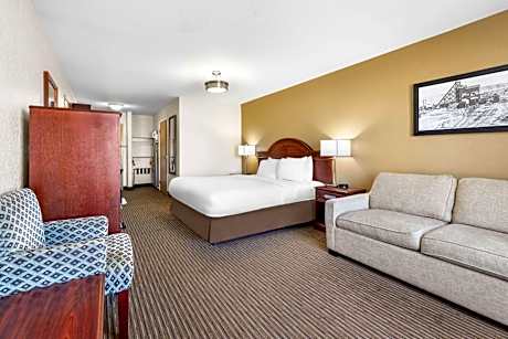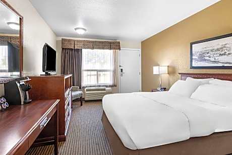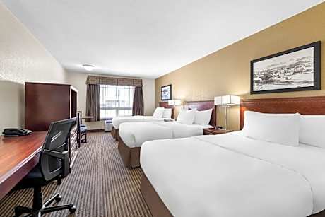 This Drumheller, Alberta hotel is just 5 minutes’ drive from Fossil World Discovery Center. It features an indoor pool with hot tub, a to-go breakfast and pet-friendly rooms with free WiFi. A cable TV and a work desk are furnished in each room at SureStay Plus Hotel by Best Western Drumheller. The simply styled rooms also include a microwave, fridge and coffee-making facilities. SureStay Plus Hotel by Best Western Drumheller offers a hot tub and a fitness room. Guest laundry facilities are available. This hotel is 10 minutes’ drive of the Dinosaur capital of the world – Royal Tyrrel Museum. Midland Provincial Park is 3.7 mi away.