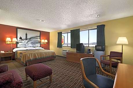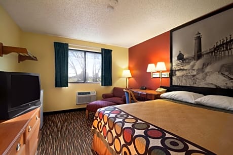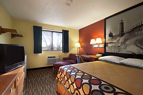At Super 8 By Wyndham Kalamazoo, exceptional service and top-notch amenities create a memorable experience for guests. Complimentary internet access is available in the hotel to ensure you stay connected during your visit.Complimentary parking is available for guests. Due to health concerns, smoking is strictly prohibited within the entire premises of hotel.For the health and well-being of all guests and staff, smoking is restricted exclusively to assigned zones. At Super 8 By Wyndham Kalamazoo, each day commences with a scrumptious breakfast offered at no additional cost. Allow your journey to be free from the pangs of hunger! On-site eateries offer delicious and accessible meal choices.At Super 8 By Wyndham Kalamazoo, affordable refreshments are available 24/7 through the convenient vending machines on-site.