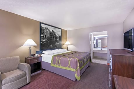 Super 8 Locust Grove is 5 minutes’ drive from the shopping of Tanger Outlet Center. Guests of this hotel will enjoy free Wi-Fi and a grab and go breakfast is offered each morning A microwave and refrigerator are provided in every simply decorated room of this Locust Grove. Cable TV is also included in all guest rooms and bedding features colorful patterns. Laundry facilities is on site and available for guests of the Locust Grove Super 8. A 24-hour front desk is also available for added convenience. This hotel is 30 miles south of Atlanta city center and located off Interstate 75. The Cabin Creek Golf Course is 20 minutes’ drive away.