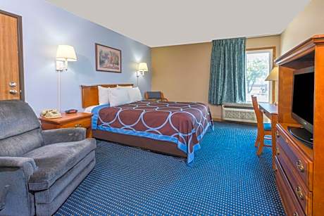 Featuring 1-star accommodations, Super 8 by Wyndham O'Fallon MO/St. Louis Area is located in O'Fallon, 18 miles from Hollywood Casino St. Louis and 31 miles from Six Flags St. Louis. The property is around 31 miles from Six Flags St. Louis, 26 miles from Thomas Jefferson Library and 26 miles from University Of MissouriâSt. Louis. The hotel features an indoor pool and a 24-hour front desk. Guest rooms are equipped with air conditioning, a flat-screen TV with cable channels, a fridge, a coffee machine, a shower, free toiletries and a desk. Featuring a private bathroom with a bath and a hairdryer, rooms at the hotel also offer free WiFi. Guest rooms will provide guests with a microwave. St. Louis Lambert International Airport is 24 miles away.