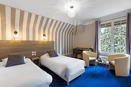 Set in a Norman house, Sure Hotel by Sure Hotel by Best Western Port Jérome - Le Havre - Le Havre is located in the center Noter-Dame de Gravenchon, and features free WiFi access. It is a 30-minute drive from Le Havre, Honfleur and Etretat and offers a view of Farm de Tepee Horse Riding School. Each room is equipped with a work desk and a flat-screen TV with satellite channels. The private bathroom is equipped with a bath or shower, a hairdryer and an american plug. Some of the rooms also provide a mini-bar and a welcome tray with tea and coffee facilities. A continental breakfast is served daily at an extra charge. There is a free public parking nearby, and the hotel provides easy access to the Noter-Dame de Gravenchon refinery in the Port Jerôme Industrial Estate, which is 3.1 mi away. Lillebonne industrial area is also 1.9 mi from the property, while Bolbec is 3.7 mi away. Caudebec-en-Caux is 9.6 mi away from Sure Hotel by Sure Hotel by Best Western Port Jérome - Le Havre - Le Havre.