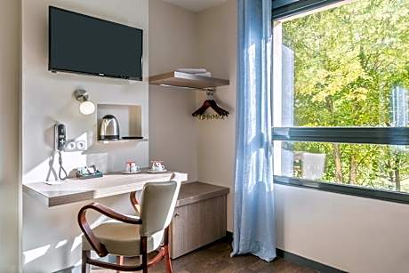 Sure Hotel by Best Western Reims Nord is located in northern Reims, 2.2 mi from the city center. It offers guest rooms with a private bathroom, satellite TV, free Wi-Fi, and tea, coffee and a kettle are provided. Guests of Sure Hotel by Best Western Reims Nord can enjoy a continental breakfast in the comfort of their room and relax with a drink in the hotel bar. The hotel also has a children’s playground. Sure Hotel by Best Western Reims Nord is a short drive from the historic center of Reims where guests can visit the Palace of Tau and the Abbey of Saint-Remi. Reims Train Station is 1.9 mi away.