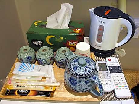 Daemyung Guesthouse Jeonju provides flawless service and all the necessary facilities for visitors. Remain linked during your visit by utilizing the complimentary internet access available.The hotel offers complimentary parking for guests who arrive with their own mode of transport.Reception services featuring luggage storage are available to cater to your requirements.Securing passes to the city's top attractions is simple with the hotel's ticket service and tours.Repeatedly enjoy your best-loved attire with the aid of the laundry service available at Daemyung Guesthouse Jeonju.Need some relaxation? Your room features daily housekeeping to make your stay even more comfortable and enjoyable. The hotel is completely smoke-free. In limited designated zones, smoking is exclusively permitted.Crafted for coziness, every guestroom provides an array of features, guaranteeing a tranquil night's sleep while maintaining the level of comfort. For an elevated experience at hotel, select rooms are equipped with air conditioning to improve your stay.For certain chosen rooms, guests can enjoy in-room amusement like television and cable TV as a part of their stay.Rest assured that your hydration needs will be met, as some guestrooms are equipped with a refrigerator, a coffee or tea maker, bottled water, instant coffee and instant tea. It is worth noting that certain guest bathrooms feature a hair dryer and toiletries for your convenience. Begin your day on a delightful note with a scrumptious complimentary breakfast, consistently served at Daemyung Guesthouse Jeonju.Begin your holiday mornings right with your essential cup of coffee, offered daily at the cafe on-site.Experience a fantastic evening effortlessly! Relish an entertaining night without venturing beyond the confines of the bar.Do you possess exceptional culinary skills? Prepare your meals personally within the hotel at its BBQ facilities.
