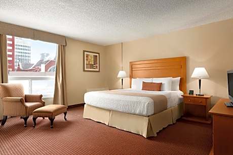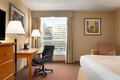 This downtown Edmonton, Alberta hotel is located in the ice district one block from the Corona Light Rail Station. A fitness center and rooms with free WiFi are provided. Rogers Place is 3 blocks away. All rooms offer a flat-screen TV with cable, a seating area and a desk. They are also equipped with coffee makers and hairdryers in the bathroom. For guests' convenience, Days Inn by Wyndham Edmonton Downtown offers a business center and meeting facilities. The front desk is available 24 hours a day. Churchill Square is only 15 minutes' walk away. West Edmonton Mall is 7.5 mi from the property.